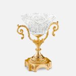 Portafrutta con cristallo trasparente molato a mano. Made in Italy. Prodotto internamente alla nostra azienda, placato oro zecchino 24 K con processo galvanico, cesellato a mano.