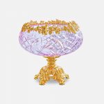 Portafrutta con cristallo color alessandrite molato a mano made in Italy. Prodotto internamente alla nostra azienda, placato oro zecchino 24 K con processo galvanico, cesellato a mano.