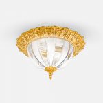 Plafoniera con cristallo made in Italy, prodotto interamente all’interno del nostro stabilimento. Placcato oro 24k con processo galvanico. Cesellatura a mano.